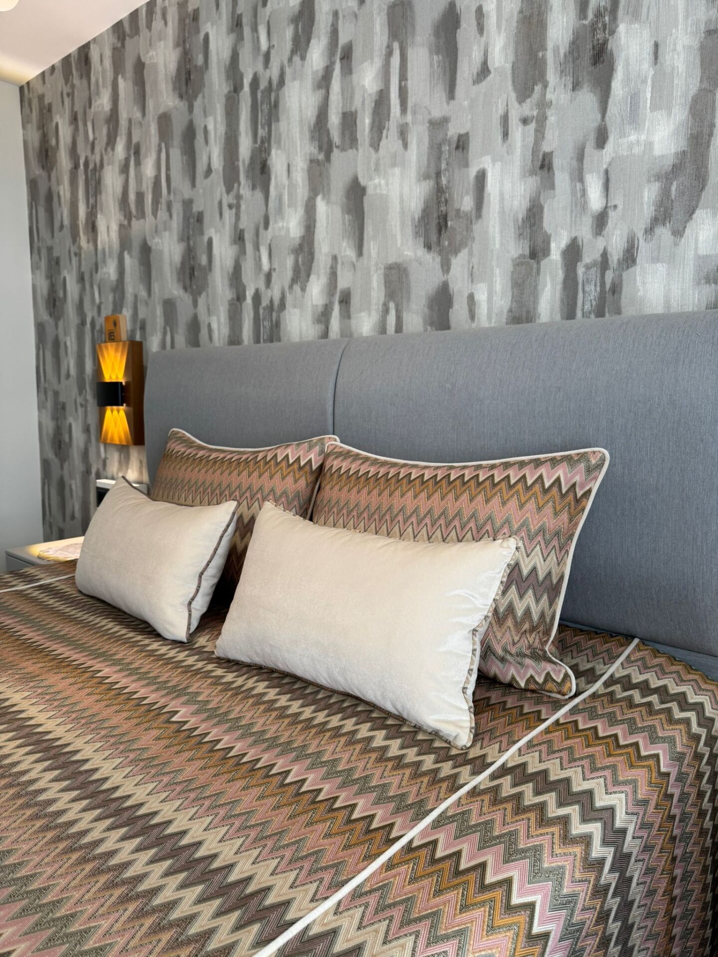 Cappucino-Pembe Detay Zigzag Desen Yatak Örtüsü
