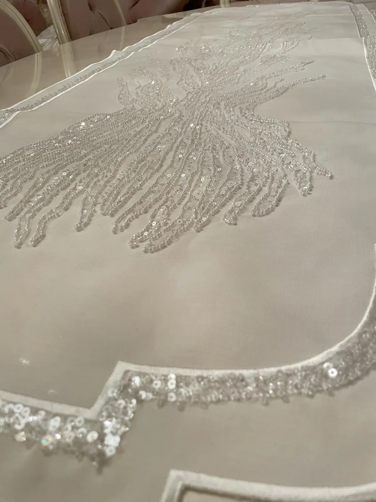 طقم غرفة معيشة من الكتان السويسري مزين بالخرز.