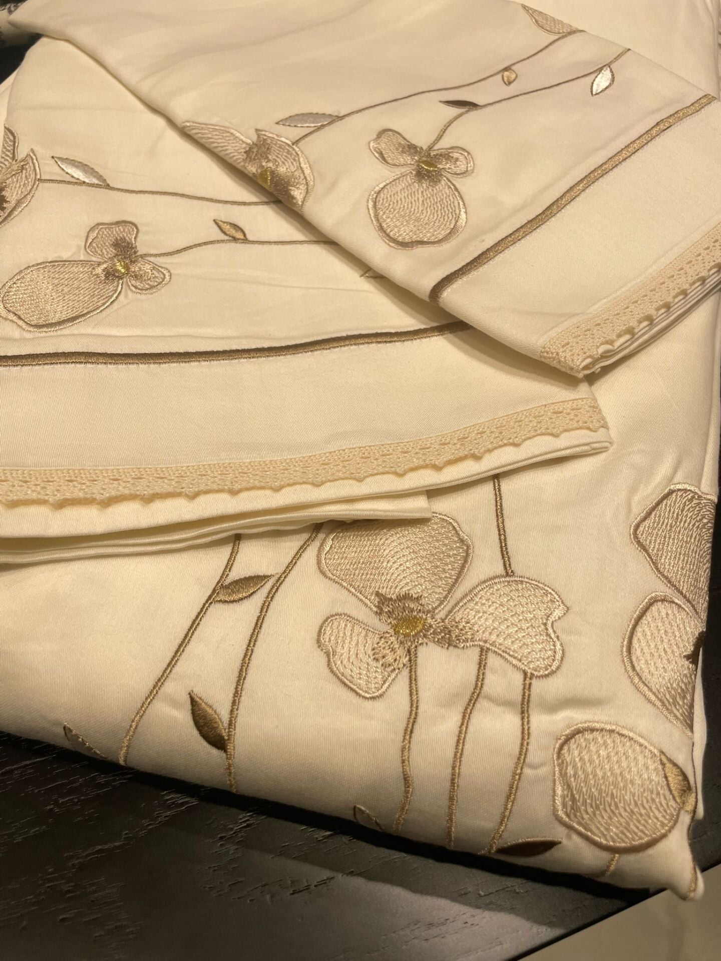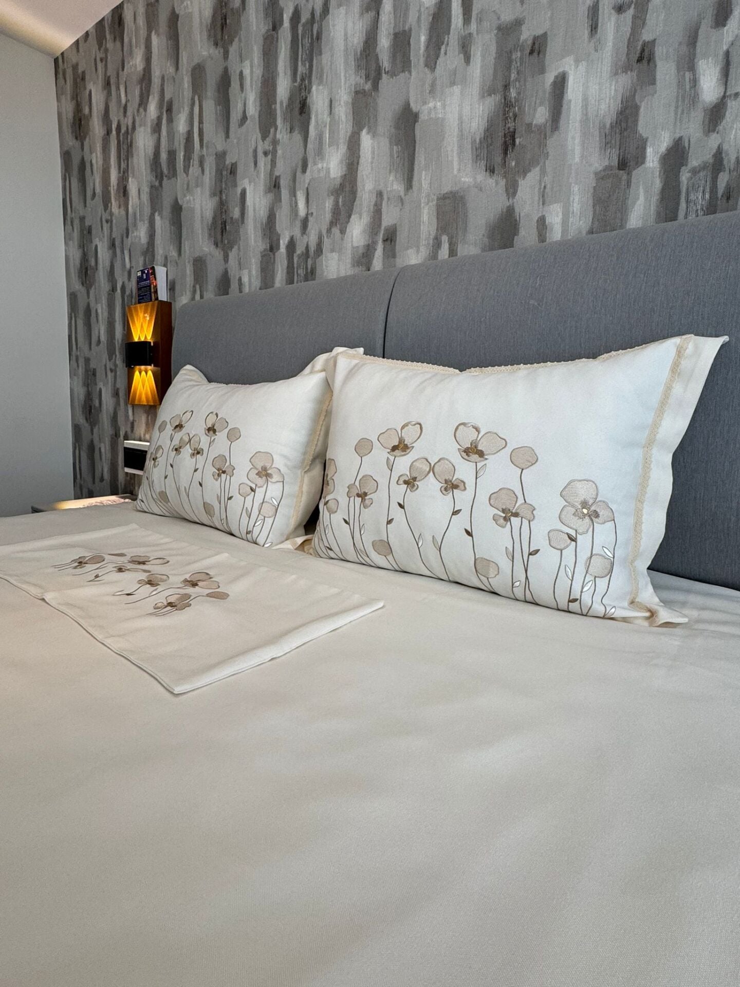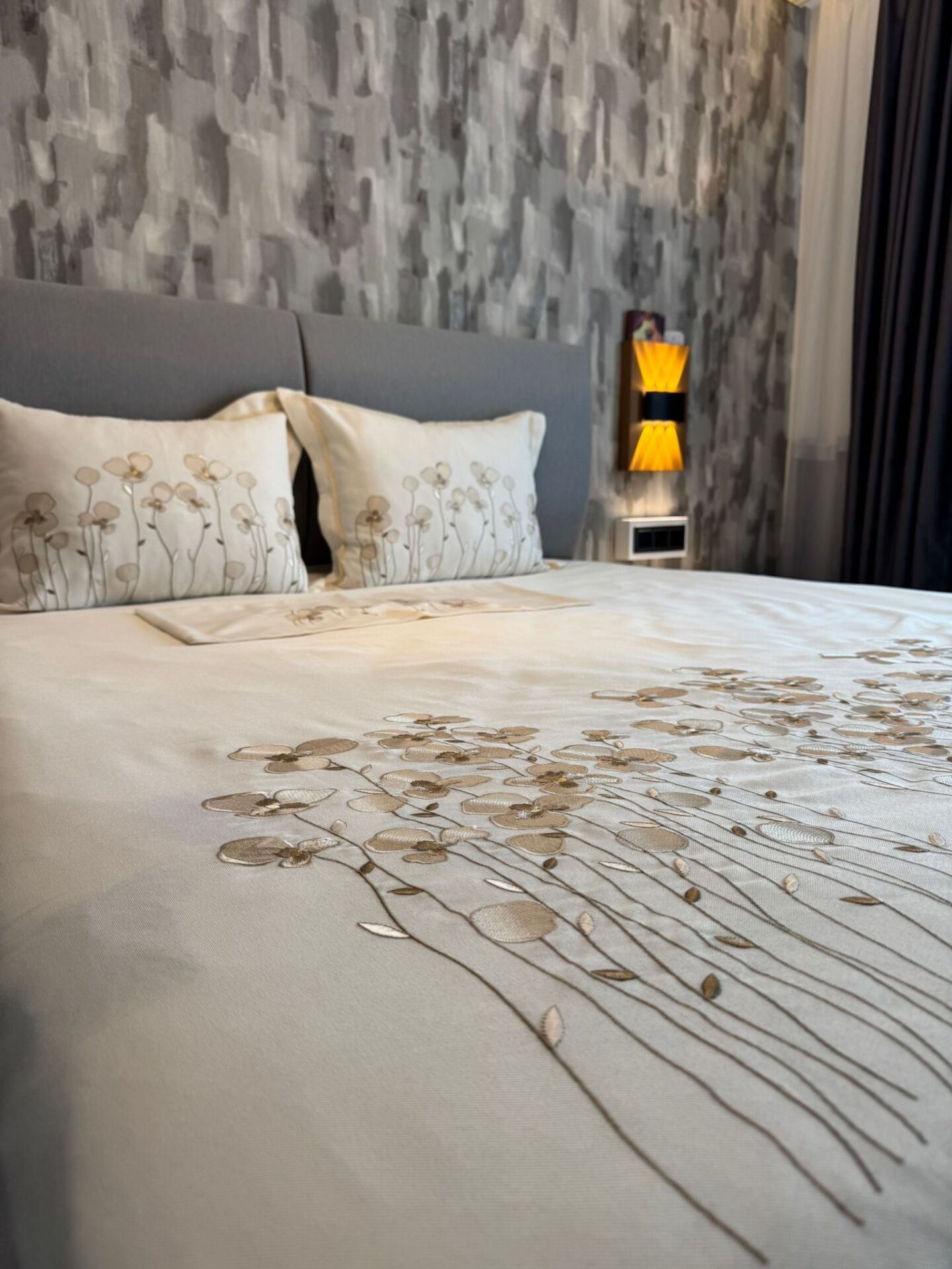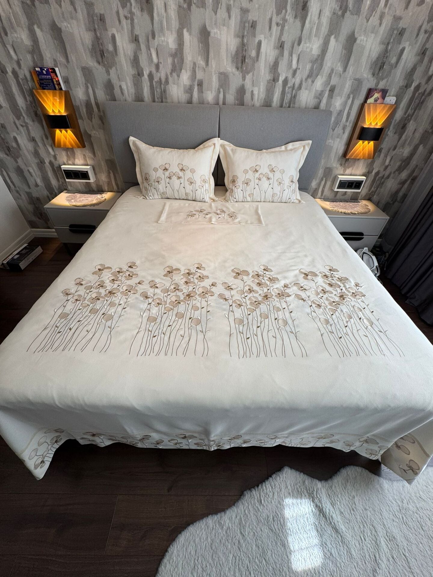 Özel keten üzerine nakış yapılan yatak setimiz 8 parçadan oluşmaktadır.