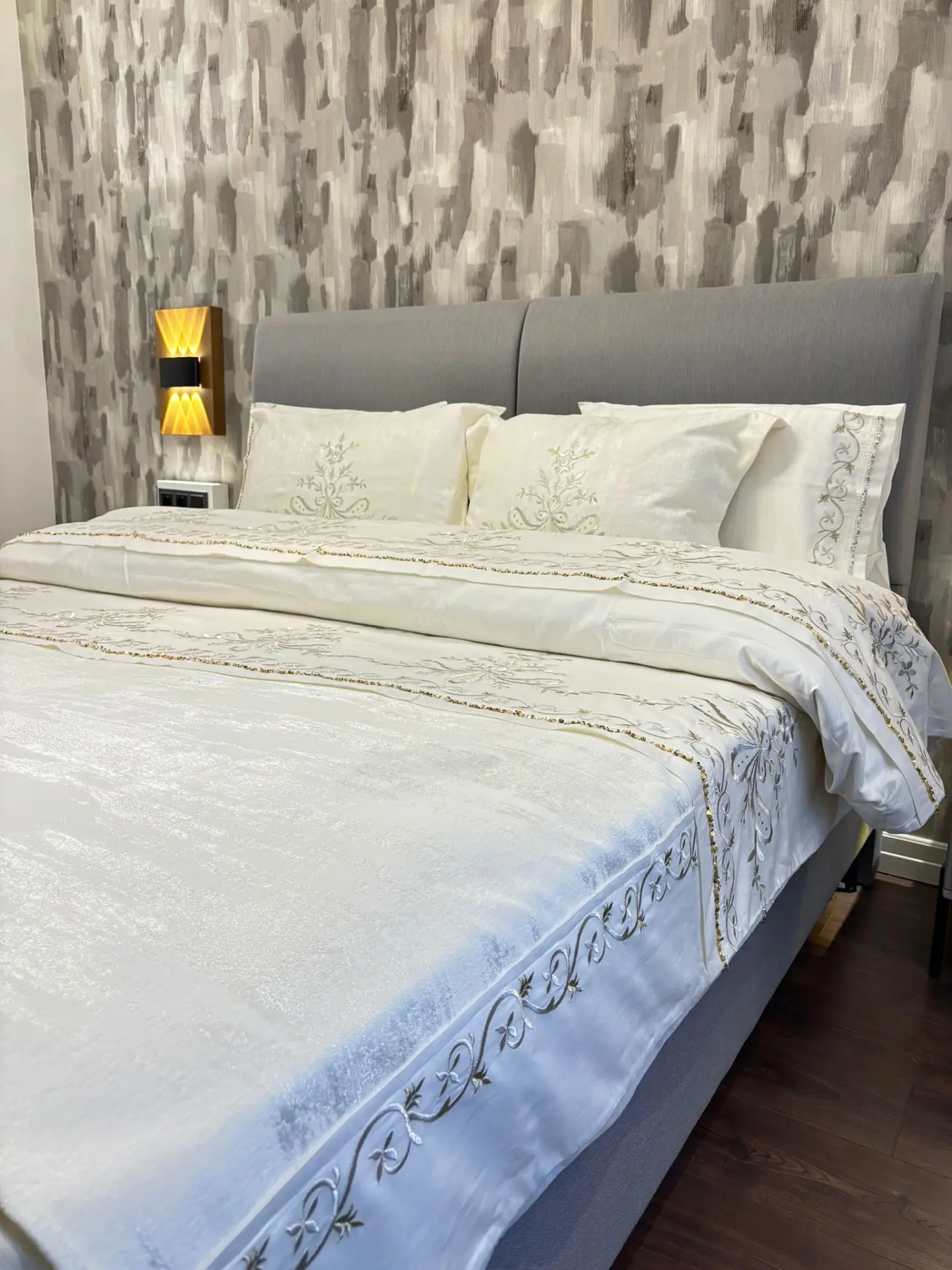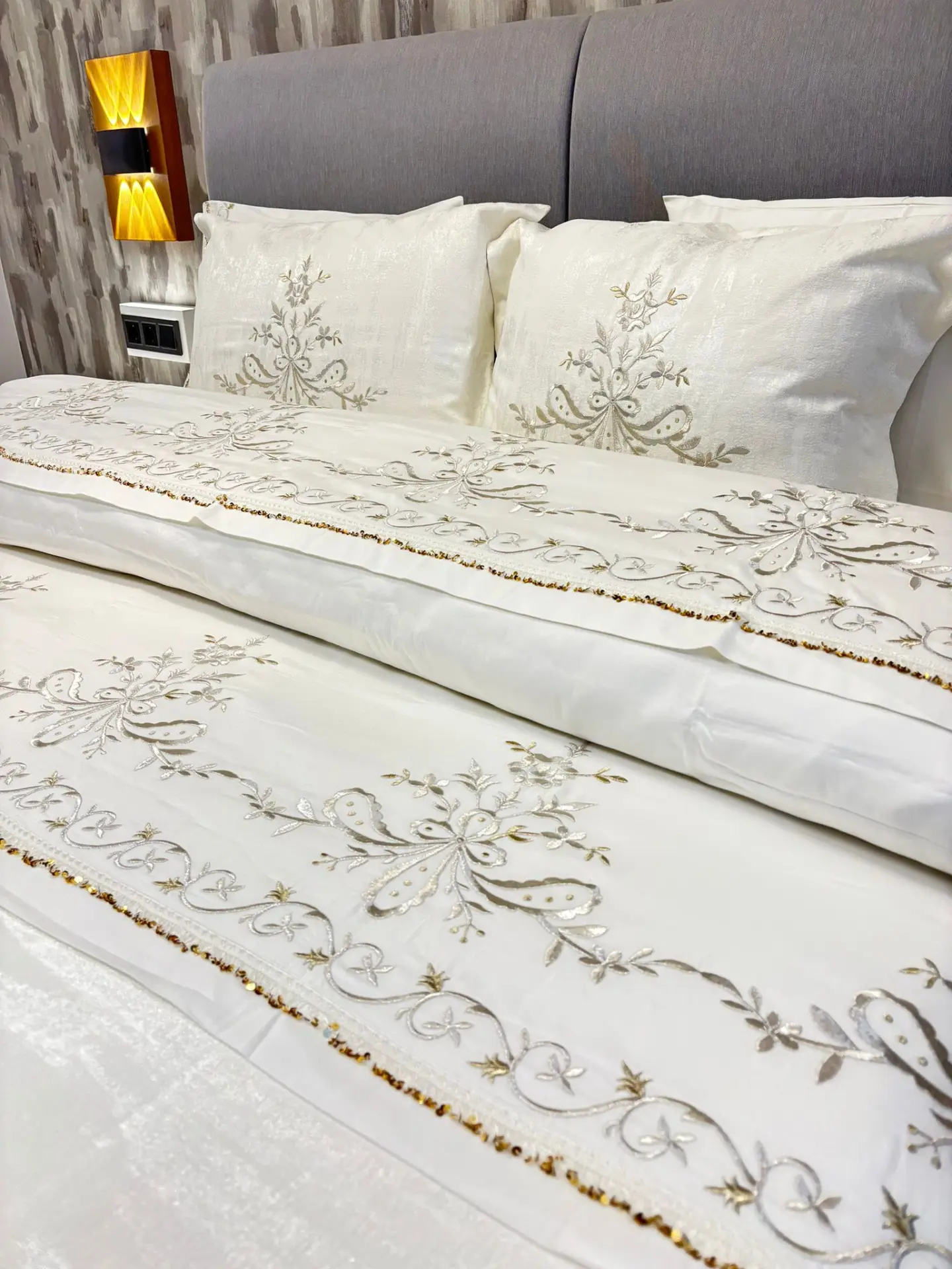Yorgan ağzı çarşaf ve yastık kılıfı %80 pamuk saten kumaştan üretilmiştir.