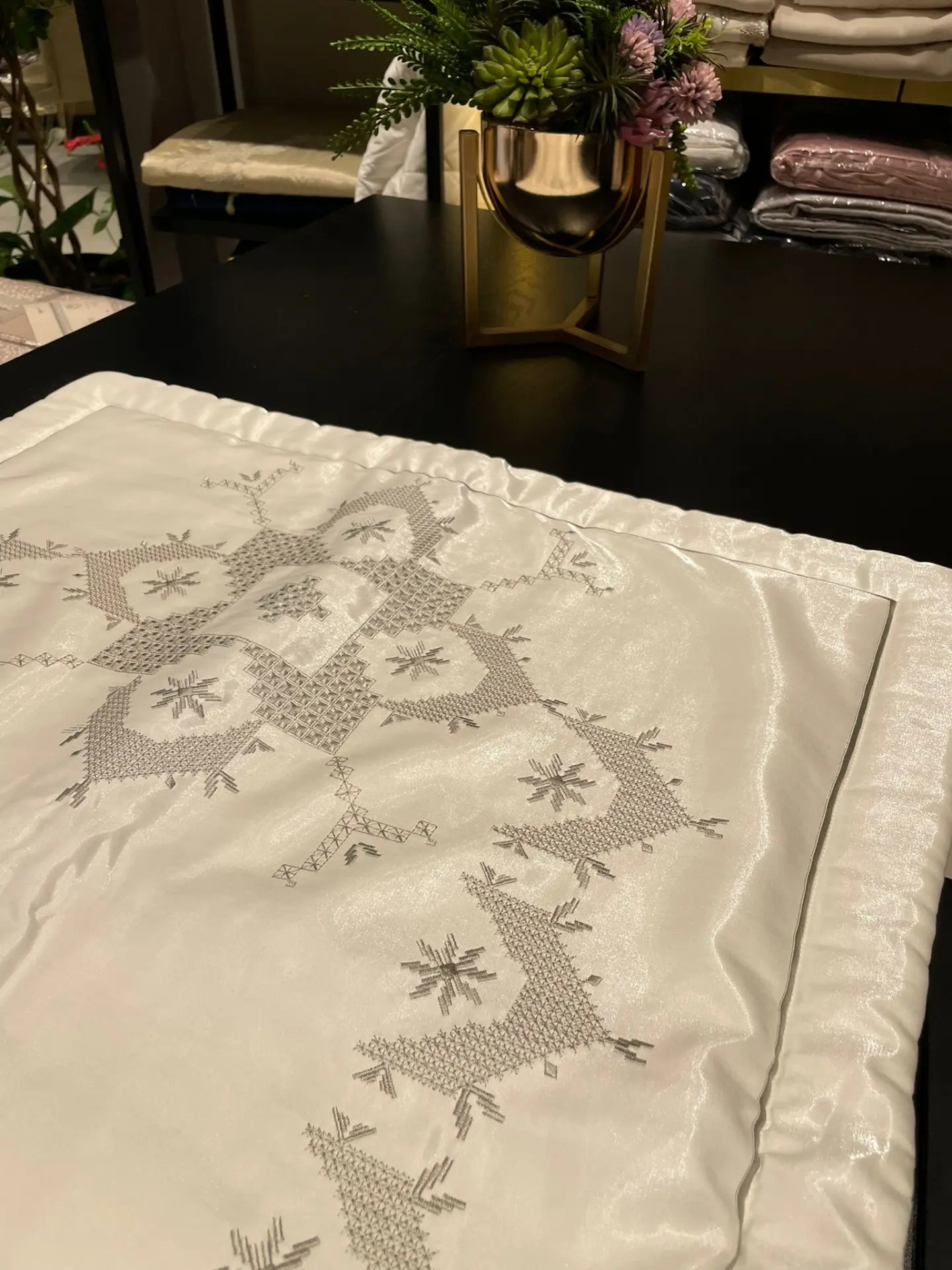 Gri Nakış Desenli Seccade