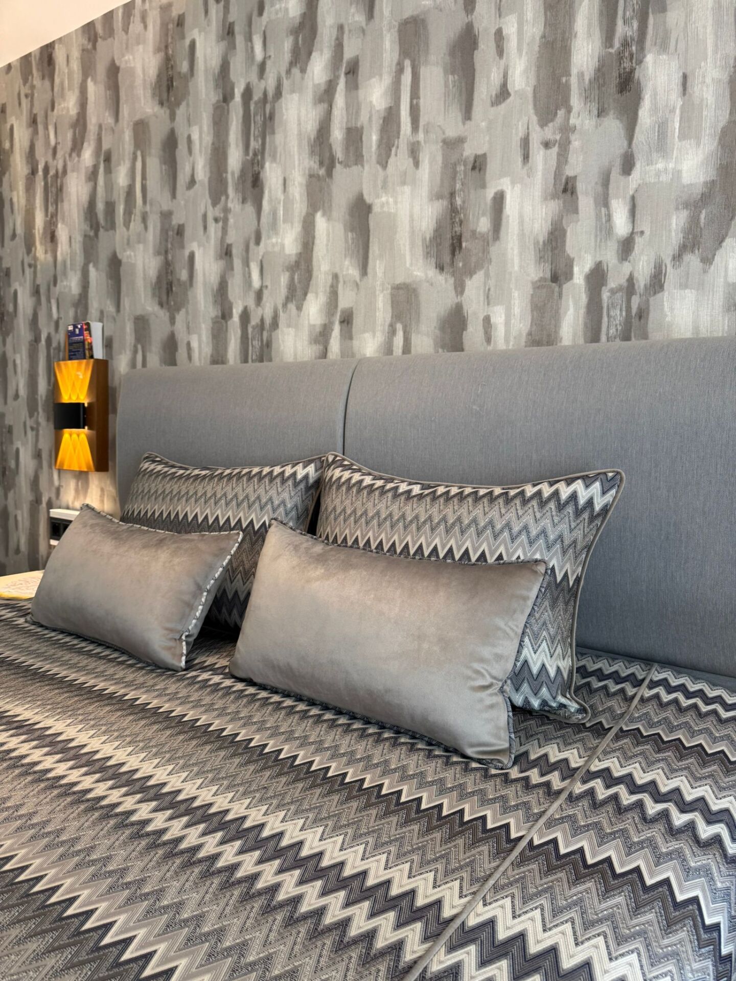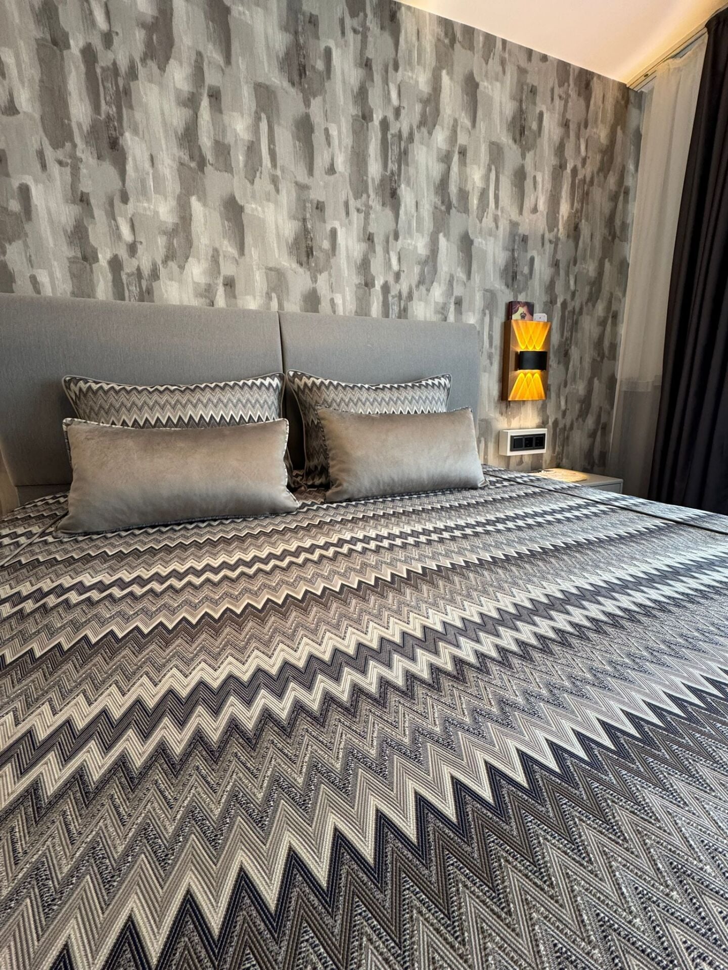 Gri Zigzag Dese Yatak Örtüsü Seti